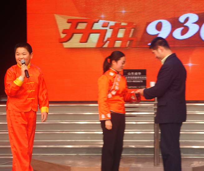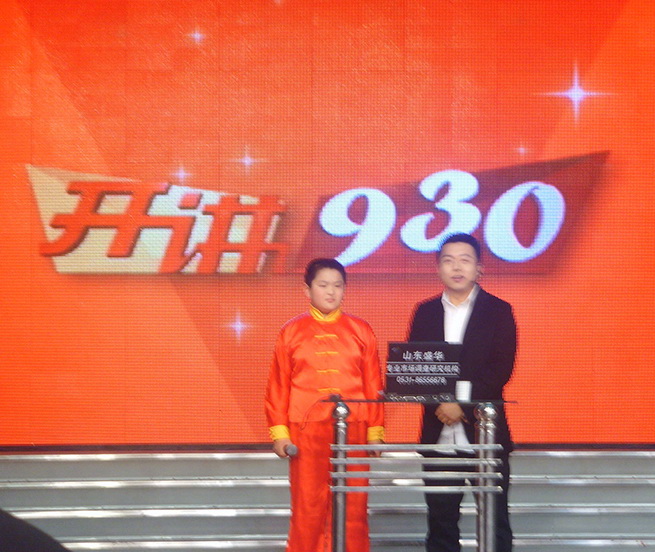 15日下午2点半节目正式开始, 齐鲁电视台主持人武大海要求姜帅作一段现场主持,台下果然走来了一对青年男女,姜帅在没有什么准备的情况下,随机进行了婚礼主持,现场又是一番唇枪舌剑的辩论,各抒己见,滔滔不绝,在对方问为什么让姜帅作婚礼主持,是不是刻意培养小童星时,家长认为,目前明星包装很盛行,姜帅作为公司的代言人参加各种活动,让公司扩大了知名度,还有一点**重要的想法是改变目前有的家长教育孩子那种万般皆下品,唯有读书高的观念,姜帅可能成名,可能不成名这不主要,不已物喜,不已己悲,心态平和,顺其自然,参与就好。姜帅的发言也别具一格,令人吃惊。对方问到学习是主要任务,作婚礼主持可能影响学习时姜帅回答:我没认为影响学习,在大连西岗26中重点班我成绩一直是中等,我爱学习,爱和同学在一起,爱参加各种活动演出,主持婚礼让我增长了见识,学习与演出并不矛盾,现在有许多大学生毕业后找不到工作,他如果学习不好,能考上大学吗?考上了大学就证明他学习好,那为什么还找不到工作呢?看着他一本正经的样子,虎头虎脑的可爱,机智灵活的回答,台下掌声雷动,经久不息。。。。。